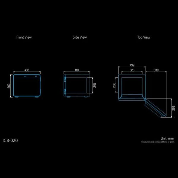 The door surface of the ICB-020 uses a design panel made of aluminum with a gradation of blue color. There are no handles or keyholes, and the stylish design adds elegance and peace of mind to your life. You can unlock it smartly by lightly touching the number on the touch panel.