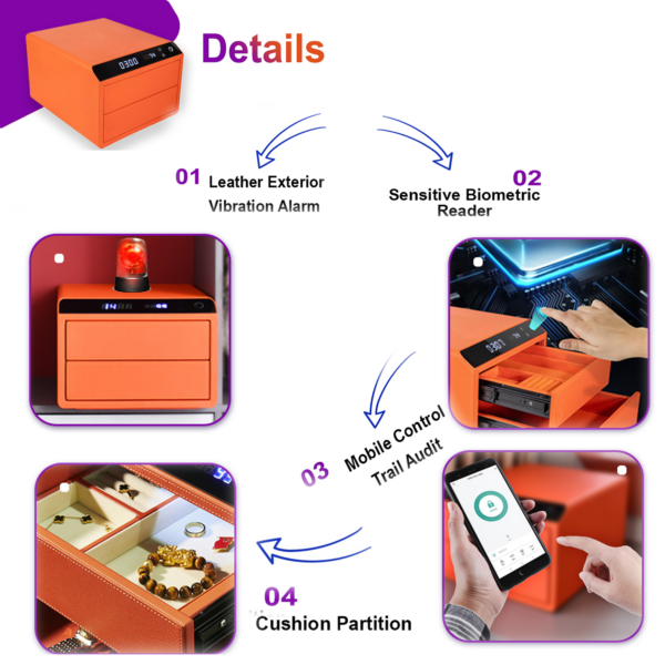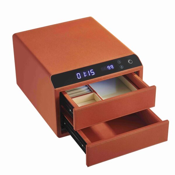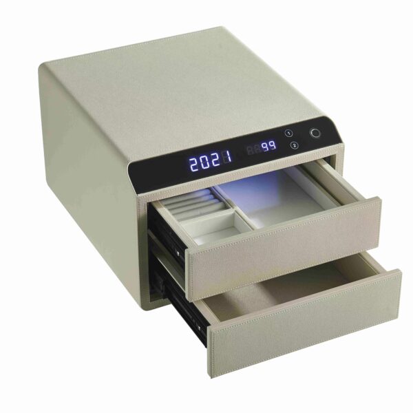 Diplomat Fireproof safe NEXT+ DPS7000, a Designer Fingerprint Safe, 1.5 Hour Fire Resistance at 1010°C. Operation: Fingerprint /Touch Screen/Fingerprint+Touch Screen. Password can be programmed to your favorite numbers (4-16 Digits). Register up to 2 user code. Exterior: H714 x W514 x D550 (mm). Interior: H530 x W380 x D320(mm). Weight: 140 kg. Capacity: 64 Litres. Tray: 1. Shelf: 1. Color: 9 Color Choice. Free Delivery To Lift/Ground Level. Warranty: 1 Years.