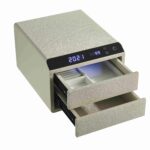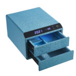 Nikawa Flip Up Safe Box BP2EA. Model: BP2EA. California DOJ approved. Safe Solid steel construction. Tamper-proof, Spring-loaded door. Electronic locks allow for 4 digit combination with keypad backlight. Audio and LED low – battery warning. Optional silent model. Backup override key include. Alarm function for abnormal operation. Exterior: 10 x 37 x 27.5(cm). Weight: 5.3 KG. Free Delivery. Made in China. 1 year product Warranty.