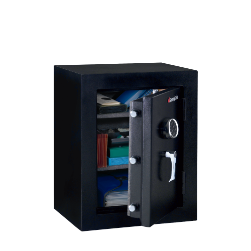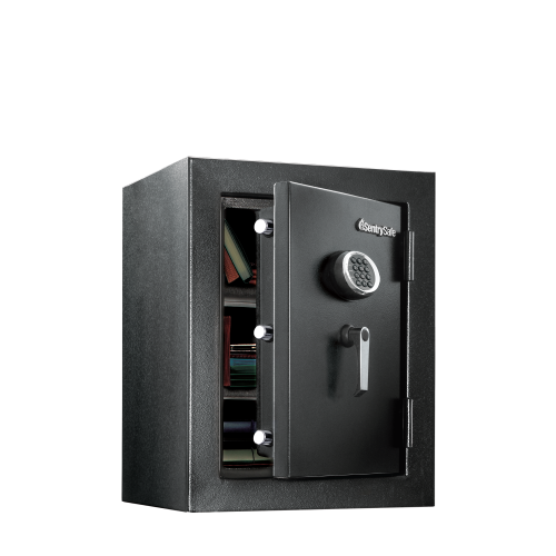 The SentrySafe EF3428E Fire-Safe will preserve your records and valuables with its exemplary features. Fire protection, water resistance and a programmable electronic lock are just a few of the safety benefits of this high-end safe. Inside your belongings can be conveniently arranged on 2 multi-position shelves and protected from scratches on the added carpeting.