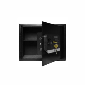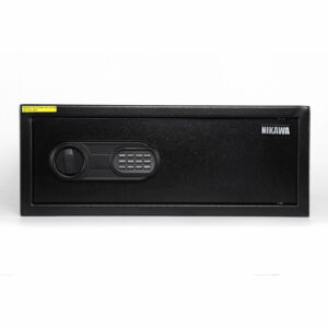 Nikawa Flip Up Safe Box BP2EA. Model: BP2EA. California DOJ approved. Safe Solid steel construction. Tamper-proof, Spring-loaded door. Electronic locks allow for 4 digit combination with keypad backlight. Audio and LED low – battery warning. Optional silent model. Backup override key include. Alarm function for abnormal operation. Exterior: 10 x 37 x 27.5(cm). Weight: 5.3 KG. Free Delivery. Made in China. 1 year product Warranty.