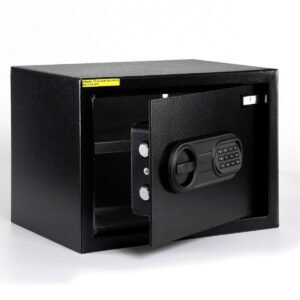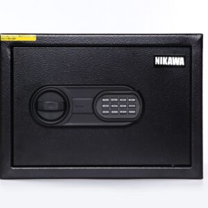 Nikawa Standard Safe EIS250 . 1 Internal Shelf. 2 locking bolts of diameter 20mm. Volume: 21 litres. 2 users of 3-8 Digit Pin. 2 override key for emergency. Indicator lights (green, red and yellow) to indicate open, low battery and warning. External Dimension: (H)25 x (W)35 x (D)25 cm. Internal Dimension: (H)24.8 x (W)34.8 x (D)19 cm. Weight:8kg. Warranty: 1 Year. Free Delivery included.