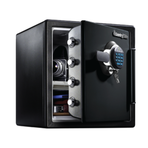 SentrySafe Fire Proof & Water Resistant Safe SFW082GTC. Fire & Water Proof Safe SFW082GTC. ETL Verified fire and water resistance. Double lock: electronic key pad & key. 1 hour fire protection up to 927°C. 4.5 metre Drop Test (Impact). Water-Resistance up to 20cm. 3 large 25mm bolts – 60% bigger. Pry Resistant hing bar. Bright LED interior lighting. Keyrack, Door pocket & Door Tray. 1 multi-position try for easy orgnization. Bolt-down hardware included. Exterior(H x W x D): 34.8 x 41.5 x 49.1 cm. Interior(H x W x D): 24.4 x 31.9 x 29.2 cm. Weight: 35.7 KG. Free Delivery. 1 year product warranty.
