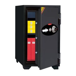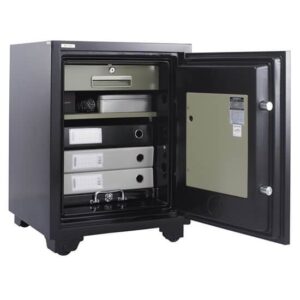 Diplomat Dual Key Safe 080KK. 1.5 Hour Fire Resistance at 1010°C. Operation: Dual Keylock. Exterior: H880 X W520 X D560 (mm). Interior: H676 x W380 x D330 (mm). Weight: 122 kg. Capacity: 85 Litres. Drawer: 1. Shelf: 2. Color: Black. 3 ways Locking; 3 solid locking bolts. Free Delivery To Lift/Ground Level. Warranty: 5 Year.