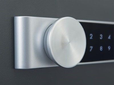 Diplomat safe Hana 500 (Fabric) Edition sports a designer front panel made out of fabric.1 Hour Fire Resistance at 1010°C. Operation: Touch Screen. Access Code: 4 to 16 digits. Exterior:H522 x W404 x D495mm. Internal:H410 x W300 x D300mm. Weight:65kg. Capacity:37L. Free Delivery to ground/lift accessible level. 1 year product warranty.