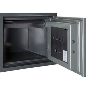 - Uses 4 AA size batteries (1.5V). In case of battery failure, the safe can be operated with a manual override function with 2 security override keys supplied.