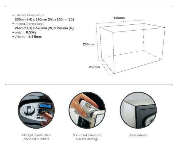 - Interior dimensions(H x W x D): 240 x 340 x 200 mm