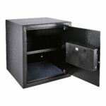 - Uses 4 AA size batteries (1.5V). In case of battery failure, the safe can be operated with a manual override function with 2 security override keys supplied.